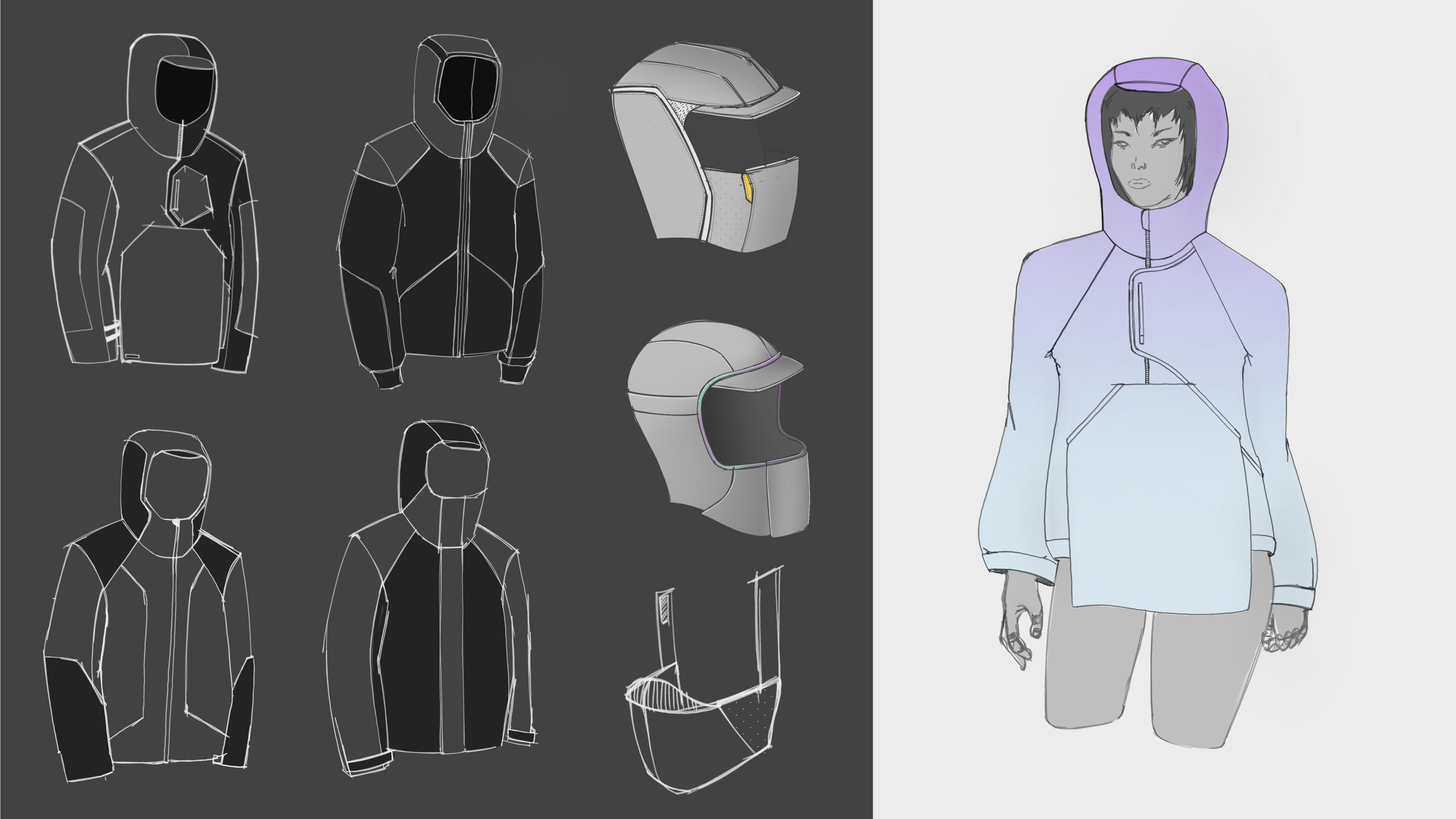 To conceptualize the brand's visual appeal, aesthetics and overall conceptualization. Designed, iterated and prototyped 9 garments made up of tops, bottoms and accessories using pattern making techniques.